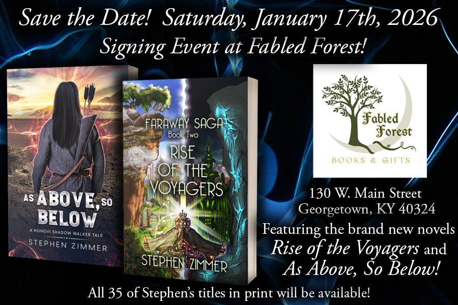 Save the date! I’ll be returning to Fabled Forest in Georgetown, Kentucky on Saturday, January 17th, 2026, for my first event of the new year, with two brand new novels to sign! I’ll have all 35 of my books in print available there, but will be spotlighting Rise of the Voyagers and As Above, So Below for the first time in person! It is a great indie bookstore run by amazing folks, and it is very close to Lexington, Kentucky. Come on out and say hi! I look forward to seeing and spending time with everyone who attends! The signing will begin at 12 noon and I’ll be at the store through the day.